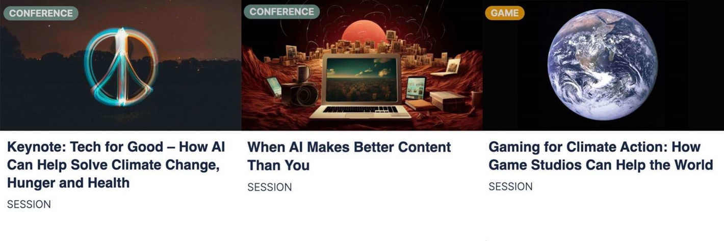 - "Tech for Good: How AI Can Help Solve Climate Change, Hunger and Health" med Travis Grizzel (Principal Technical Advisor, Amazon), der vil kaste lys over globale sammenhænge, hvor AI kan hjælpe med at løse problemer som klimaforandringer, sult og global sundhed.