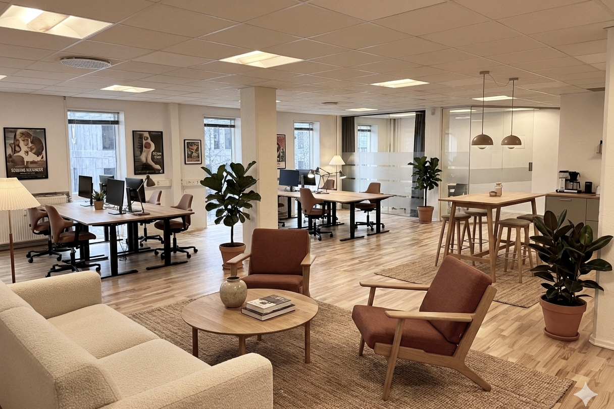 Inspiration til indretning af lokalet. Billedet af skabt vha. AI (Google, Nano Banana Pro).