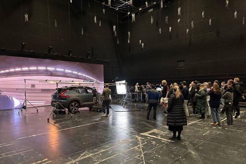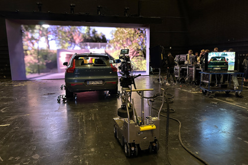 - Indkørsel til studiet fra en stor og lukket produktionsgård med plads til produktionsbiler